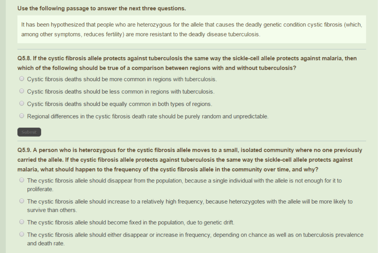 Solved Use The Following Passage To Answer The Next Three Questions It Has Been Hypothesized Thal People Who Are Heterozygous For The Allele That Causes The Deadly Genetic Condition Cystic Fibrosis Which Uinono